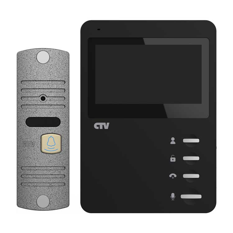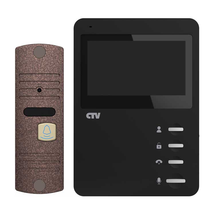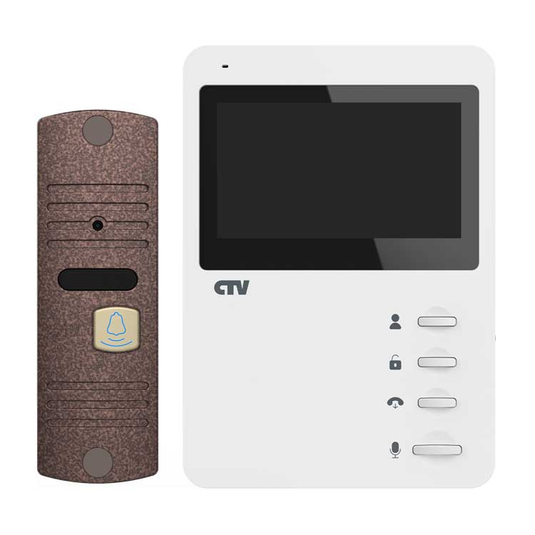 CTV-DP1400N Комплект видеодомофона из вызывной панели CTV-D10NG и монитор CTV-M1400N, монитор с экраном 4,3", Hands free, встроенный источник питания, подкл до 2 выз. панелей, выключатель питания, разъем HOOK, цв. корпуса монитора - белый/черный, панели - бронза/серебро