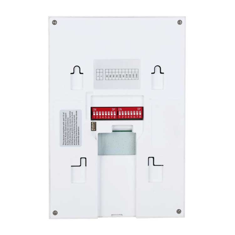 Монитор видеодомофона 4.3 дюймовый с WiFi 2.4ГГц, возможность просмотра HDCVi камер, белый, 480x272 разрешение, ёмкостной сенсорный экран; тревожные входы / выходы 4/1; SD карта памяти до 64Гб; Питание: через 2-проводной контроллер; Выход питания: 12В, 200мА; Габаритные размеры: 176.3 мм × 119.3 мм × 20 мм; Установка на стену.