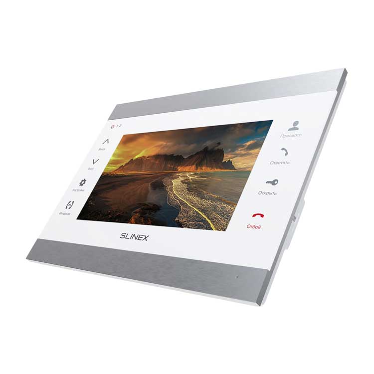 1080P Цветной, настенный, 7" IPS TFT LCD дисплей 16:9, разрешение экрана 1024×600. Подключение 2-х вызывных панелей и 2-х видеокамер AHD и CVBS стандартов до 2 Мп. Функция памяти – есть, запись видео на microSD карту до 64 ГБ. Интерком до 4-х домофонов: SL-10M, SL-10, SL-07M, SL-07, SQ-07MT, SQ-07, SM-07M, SQ-04M, MS-04, SM-04M (SL-07IP, SL-10IP и SL-10IPT могут быть только основными при соединении в интеркоме). Новый графический интерфейс. 16 полифонических мелодий. Получение входящего вызова от вызывных панелей на смартфон, подключение к сети Ethernet, встроенный Wi-Fi, удаленный просмотр вызывных панелей. Потребляемая мощность до 12 Вт, питание: ~100-240 В или +13,5 В. Размеры: 230×165×22 мм. Цветовые решения: серебро+черный, серебро+белый. Рекомендуется использовать с ML-15HD и ML-16HD.