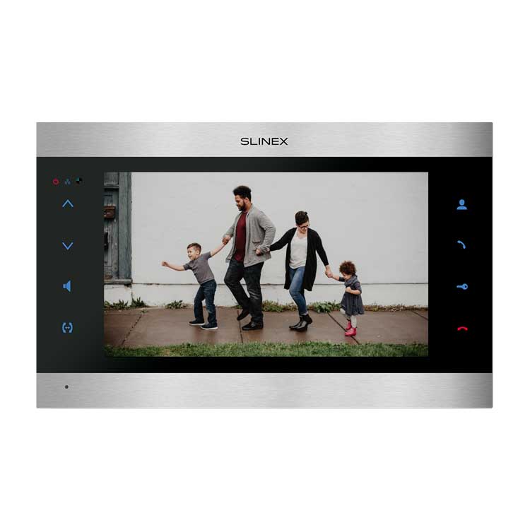 1080P цветной, настенный, 10 сенсорный IPS TFT экран 16:9, разрешение экрана 1024×600. Подключение 2-х панелей и 2-х камер любого из стандартов: AHD/TVI/CVI/CVBS до 2 Мп, либо 2-х камер IP до 2Мп. Запись фото или видео на SD-карту до 256 ГБ. MP3 мелодии вызова. Интерком до 4-х домофонов: SL-10M(HD), Sonik 10, SL-07M(HD), SQ-07MT(HD), SM-07M(N/HD), Sonik 7, SQ-04M; SL-07IP(HD) и SL-10IPT(HD), а также SM-07N/SL-07N/SL-10N/Sonik 7 Cloud могут быть только основными при соединении в интеркоме. Получение входящего вызова от вызывных панелей на смартфон, подключение к сети Ethernet, квадратор, функция DVR (запись по всем четырем каналом по детекции движения или по расписанию), встроенный Wi-Fi. Удаленный просмотр дополнительных камер и вызывных панелей. 16 полифонических мелодий. Режим «Не беспокоить», заставка с часами. Потребляемая мощность – до 12 Вт. Питание: ~100-240 В или +13,5 В. Размеры: 305×190×24 мм. Цветовые решения: серебро+черный, серебро+белый.