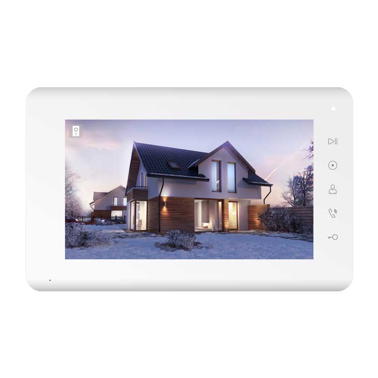 Монитор цветного видеодомофона TFT LCD 7" 800x480, CVBS (PAL), Hands-Free, 2 панели, 2 камеры, до 6-ти шт. в параллель. Питание 220В. Габариты 205х128х18 мм.