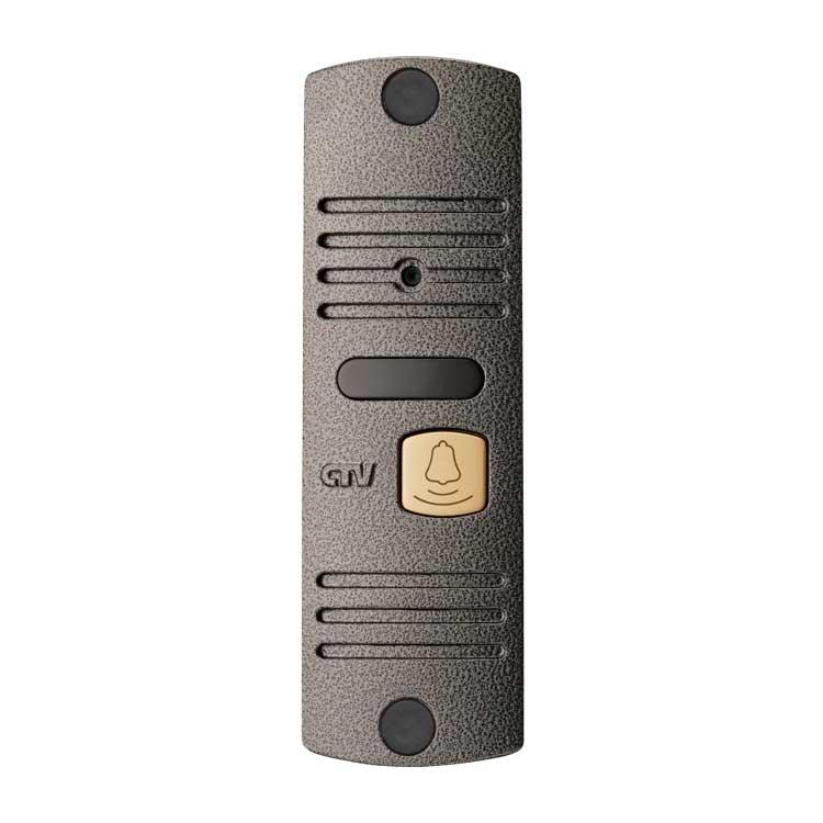 Вызывная панель для видеодомофона, компактный корпус, подсветка кнопки вызова цв. "гавана"/серебро/бронза, коммутация - разъём, монтаж. уголок и козырек в комплекте