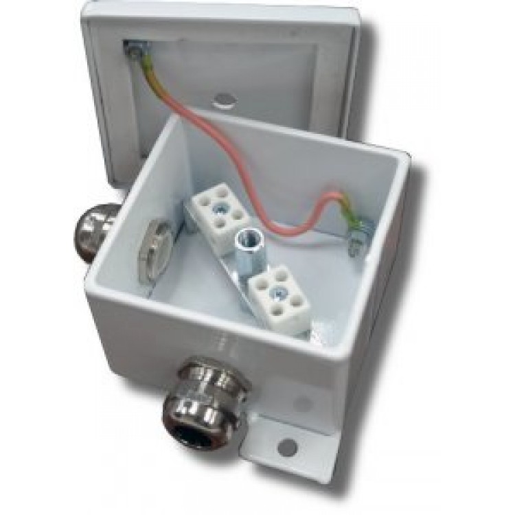Корпус коробки целиком изготовлен из стали 2,5-3 мм. Имеет двойную защиту от коррозии ( гальваническое покрытие и покраска). Крышка прижимается к корпусу через силиконовую прокладку. Винт крепления крышки снабжен уплотняющей тарельчатой шайбой с фторопластовым покрытием. Внутри корпуса коробки установлены керамические клеммные колодки, обеспечивающие соединение "под винт", и клемма заземления. В боковых стенках устанавливаются металлические кабельные вводы. Крепление коробки к элементам конструкций рекомендуется осуществлять на приварные пластины с применением гаек и винтов или с помощью саморезов и металлических дюбелей.